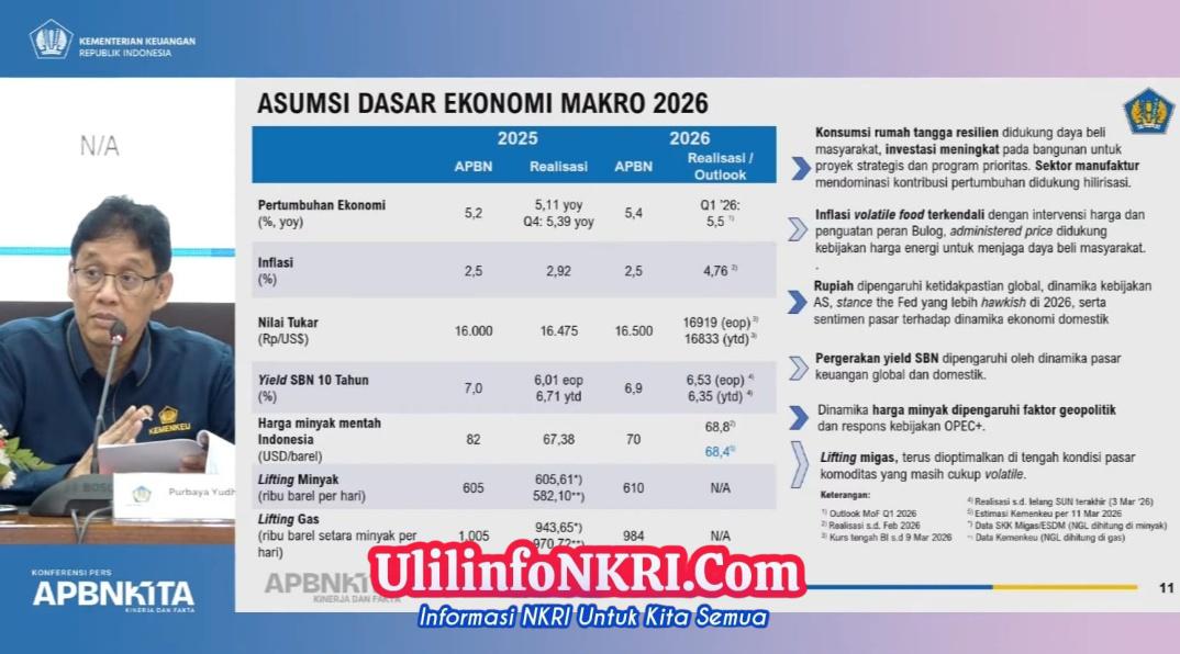 “Di sisi energi, realisasi harga minyak mentah Indonesia hingga Februari sebesar USD 68,8 per barel. Estimasi kami, realisasi ICP secara year to date hingga Maret 2026 sekitar USD 68 per barel. Ini sudah memasukkan kenaikan hingga USD 120 per barel yang sebentar itu. Ini masih di bawah asumsi APBN sebesar USD 70 per barel,” kata Menteri Keuangan Purbaya Yudhi Sadewa dalam konferensi pers di Jakarta, Rabu (11/3).