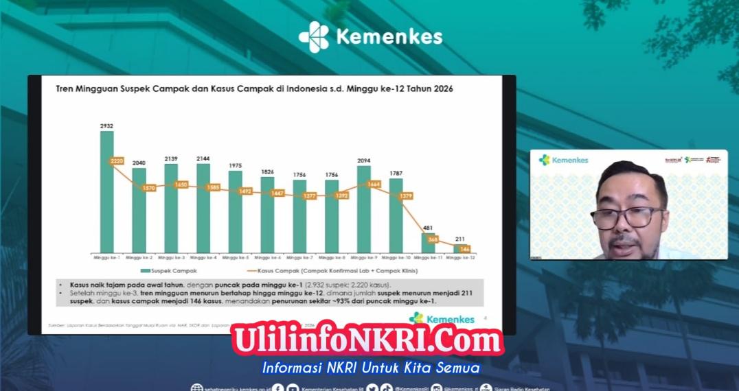 Ulilinfonkri.com – Jakarta — Kementerian Kesehatan (Kemenkes) mencatat penurunan drastis pada kasus penyakit campak di Indonesia. Berdasarkan data terbaru, angka kasus penyakit menular ini telah melandai hingga 93 persen sejak awal tahun 2026.