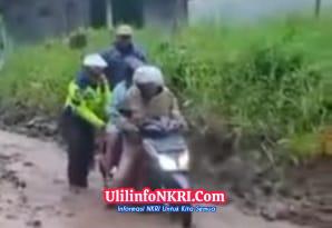 Melihat situasi tersebut, personel Polantas yang berada di lokasi tanpa menunggu alat berat langsung turun membantu. Bersama warga sekitar, petugas mendorong kendaraan satu per satu agar bisa keluar dari kubangan lumpur.