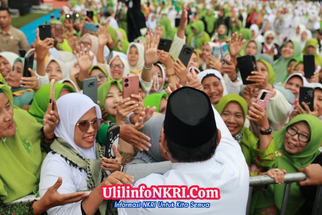 Suasana khidmat sekaligus menggetarkan langsung terasa saat lantunan sholawat menggema dari berbagai sudut stadion, tepat ketika Prabowo tiba di lokasi acara. Ribuan jamaah larut dalam doa dan pujian, menciptakan atmosfer religius yang penuh haru.