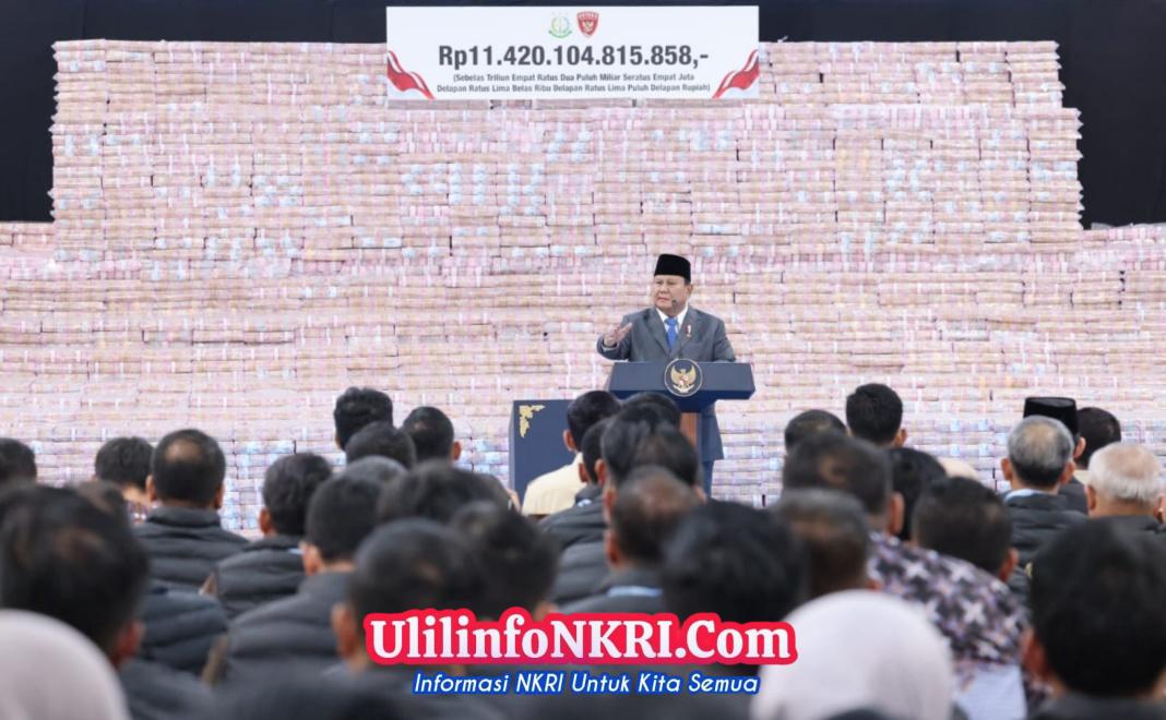 Ulilinfonkri.com – Jakarta, 10 April – Presiden RI Prabowo mengapresiasi kerja Satuan Tugas Penyelamatan Kawasan Hutan (Satgas PKH) yang telah menyelamatkan aset-aset negara hingga senilai Rp371 triliun selama 1,5 tahun kerja. Angka ini nyaris setara dengan 10 persen Anggaran Pendapatan dan Belanja Negara (APBN) yang totalnya Rp. 3.842 triliun.