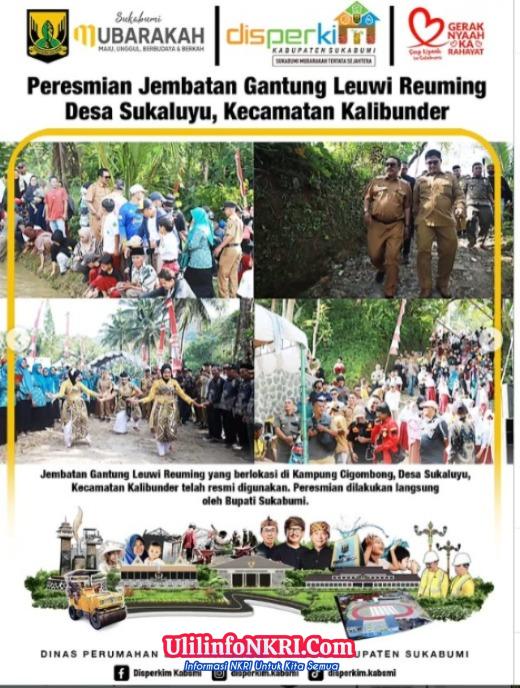 Ulilinfonkri.com, Sukabumi, 01 Februari 2026, – Jembatan Gantung Leuwi Reuming yang berada di Kp. Cigombong, Desa Sukaluyu, Kecamatan Kalibunder, kini resmi digunakan masyarakat setelah diresmikan langsung oleh Bupati Sukabumi.