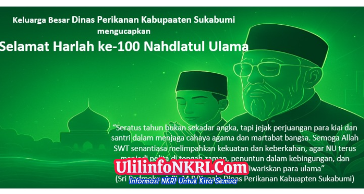 Dinas Perikanan Kabupaten Sukabumi Keluarga Besar Dinas Perikanan Kabupaten Sukabumi Mengucapkan Selamat Harlah ke-100 Nahdlatul Ulama Berita, Perikanan|January 31, 2026by aaruslan007@gmail.com Ulilinfonkri.com,- Sukabumi, 31 Januari 2026 – Dalam semangat Sukabumi Mubarokah yang menjiwai gerak